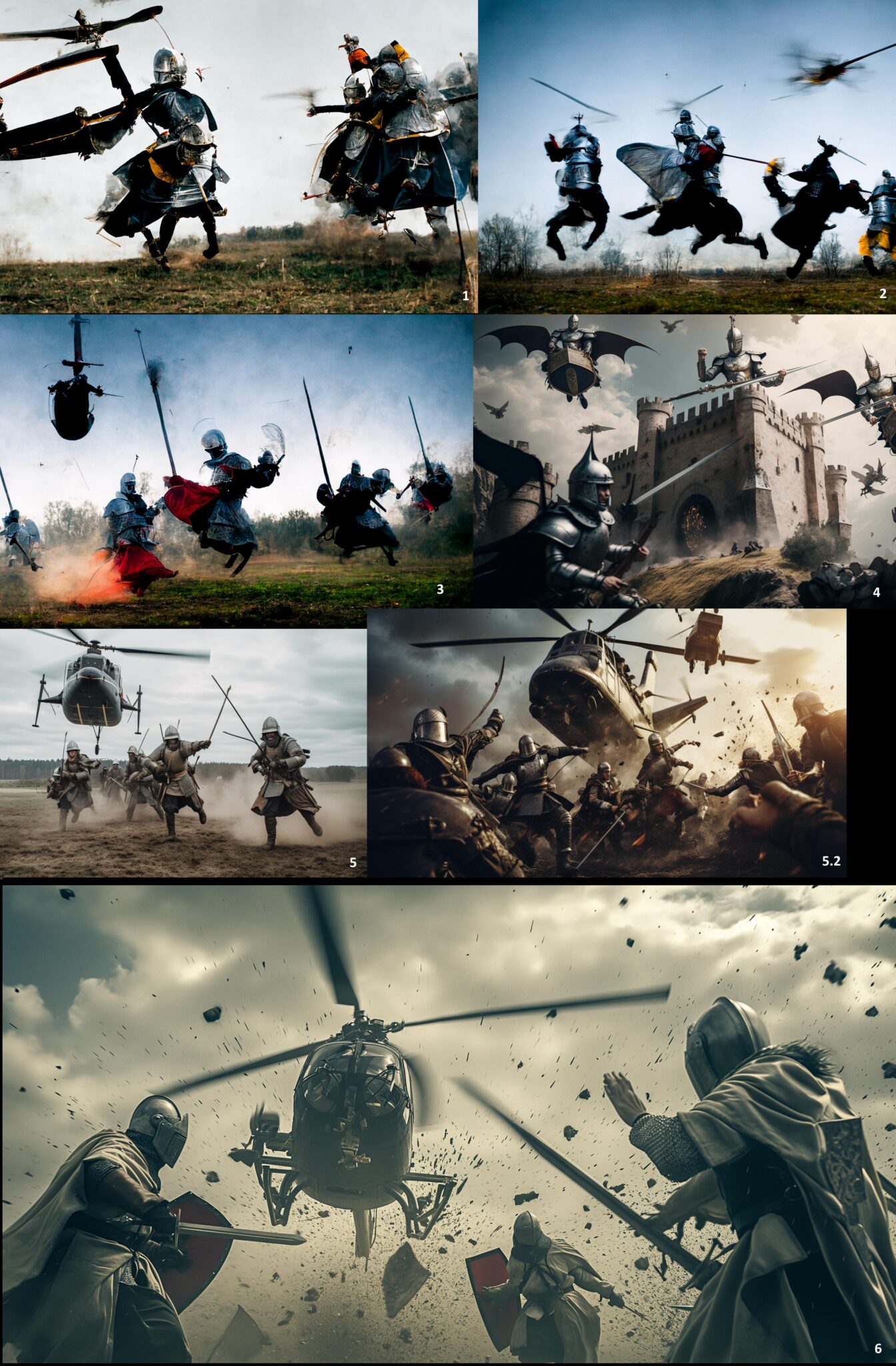 Dessine des chevaliers en armurent qui mènent l'attaque contre un hélicoptère !
