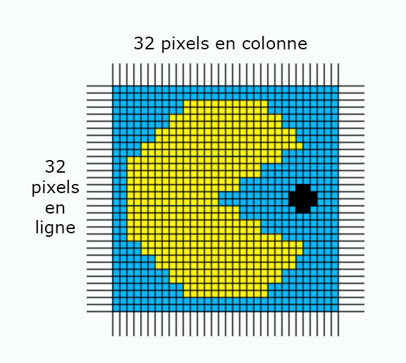 Dans cet exemple, l'image est composée de 32 x 32 pixels. Elle a donc une définition de 1024 pixels