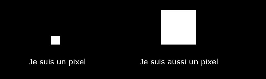 C'est une notion un peu difficile à comprendre. Le pixel est une unité de mesure. C'est l'élément de base qui permet de construire l'image par accumulation. En revanche, il n'a pas de taille fixe.
