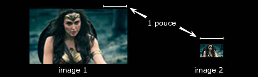 Pour pouvoir s'y retrouver, on a inventé la résolution. La résolution d'une image numérique est le nombre de pixels contenus par unité de longueur. L'une des unités les plus connue est le pouce, l'unité anglo-saxonne. Un pouce est égal à 2,54 cm. Ainsi on trouve souvent la définition en pixels par pouce (acronyme : ppp). On l'appelle le plus souvent dpi (dot per inch )